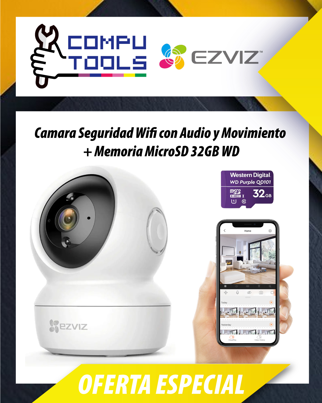 La cámara de seguridad EZVIZ C6N ofrece vigilancia inteligente con cobertura de 360°, visión nocturna por infrarrojos y detección de movimiento inteligente. Gracias a su diseño compacto y conectividad Wi-Fi, se integra fácilmente en cualquier espacio del hogar u oficina. Incluye audio bidireccional y almacenamiento flexible en tarjeta microSD o en la nube, lo que la convierte en una solución práctica y confiable para monitoreo continuo.