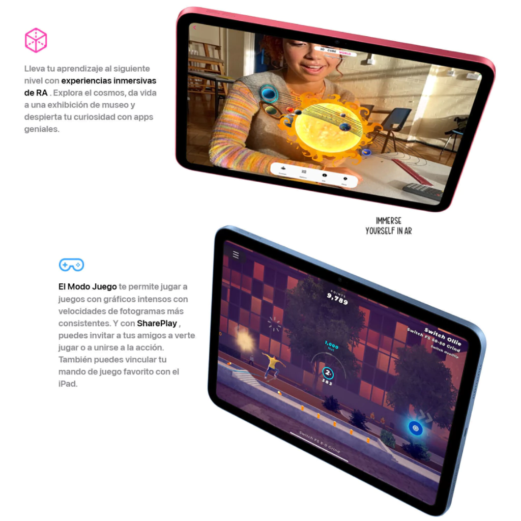 • Funciones adicionales: Compatible con Apple Pencil (1ª generación), Smart Connector para teclado folio