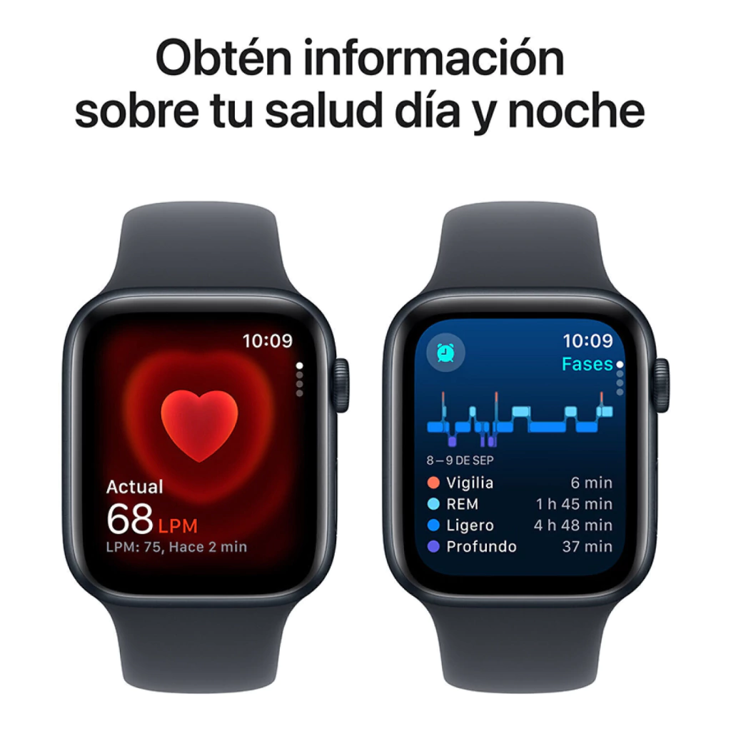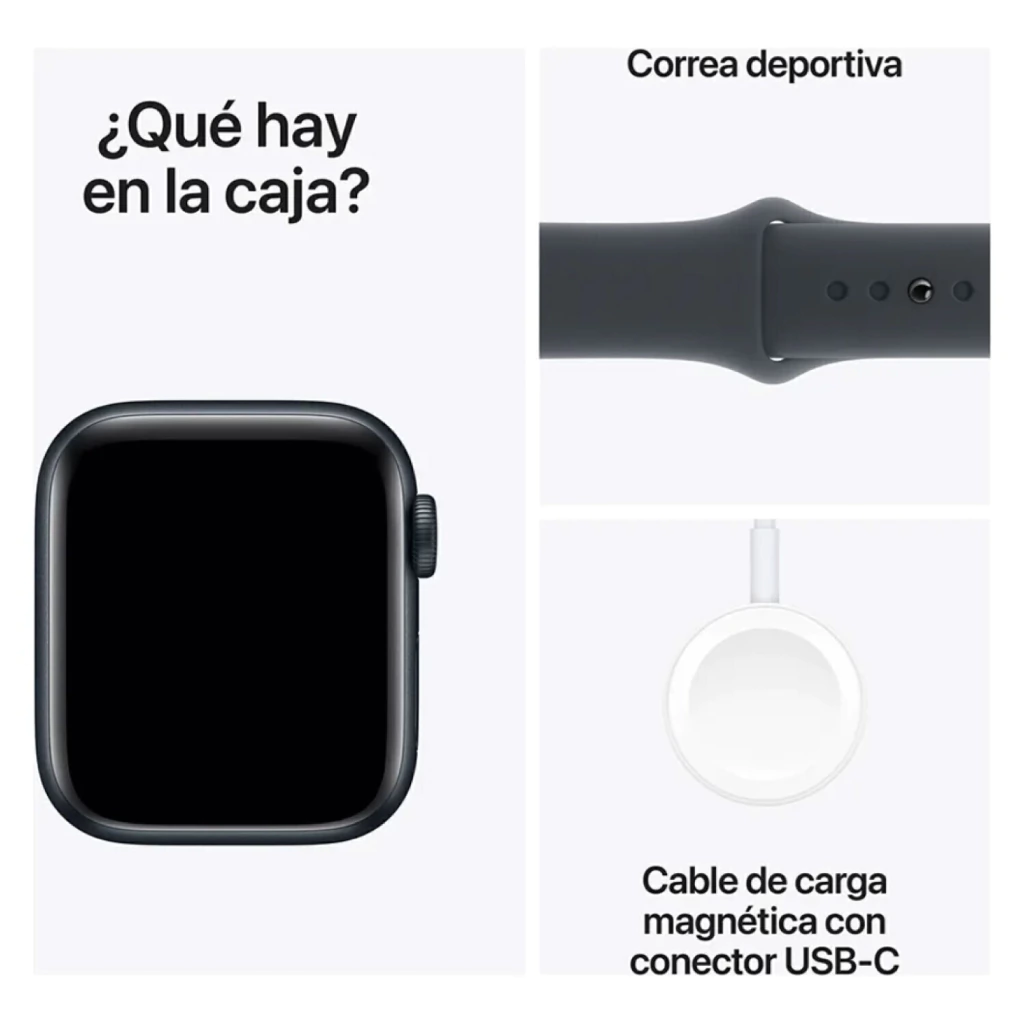 El Apple Watch SE 2ª Generación de 44 mm con GPS ofrece el equilibrio ideal entre rendimiento y diseño. Su caja de aluminio Midnight y correa deportiva brindan comodidad y estilo para uso diario. Cuenta con pantalla Retina de alta definición, procesador Apple S8, almacenamiento de 32 GB y sensores avanzados para seguimiento de actividad física, sueño y frecuencia cardíaca. Incluye conectividad Bluetooth, Wi-Fi y NFC compatible con Apple Pay. Su batería ofrece hasta 18 horas de autonomía y resistencia al agua de 50 m, lo que lo convierte en un reloj confiable para entrenamiento o uso cotidiano.